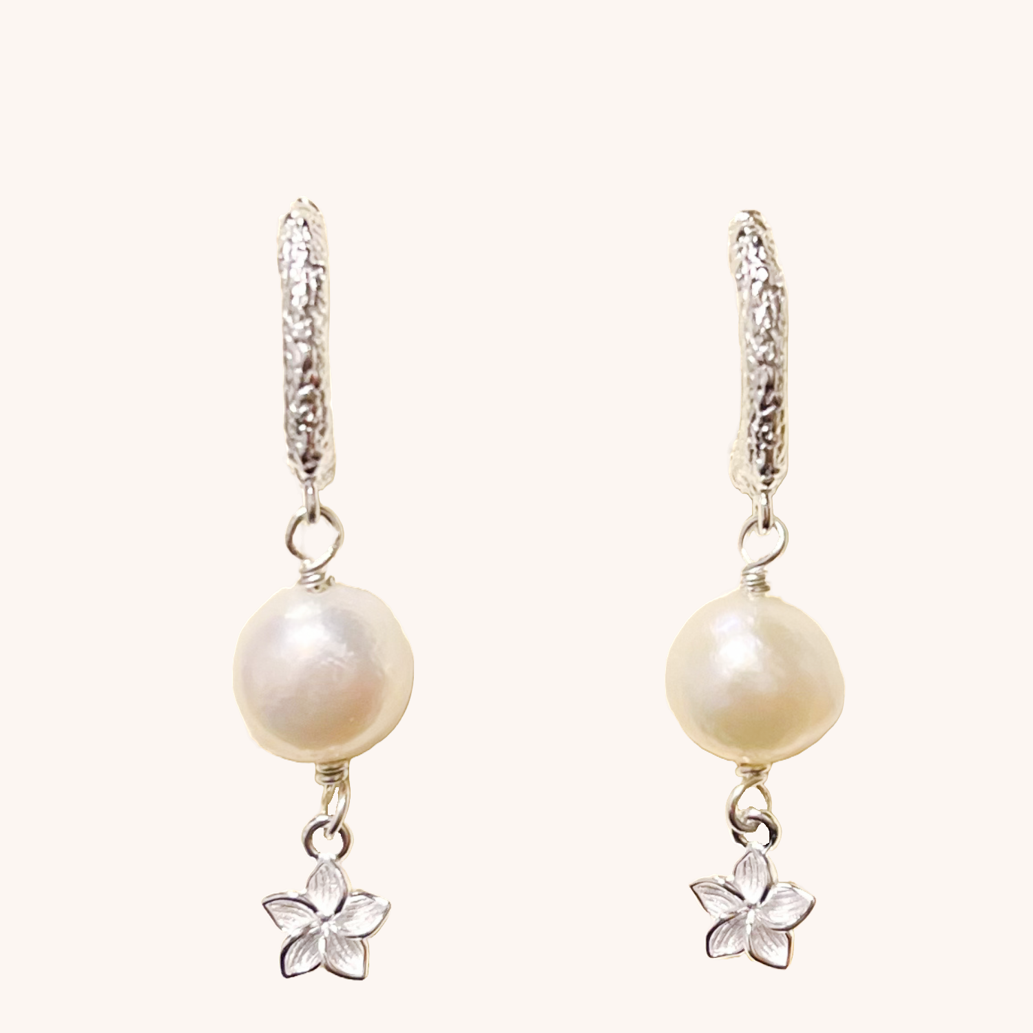 Ayla Øreringene er nogle simple kreol-øreringe. De har en stor ferskvandsperle og et vedhæng af en blomst.